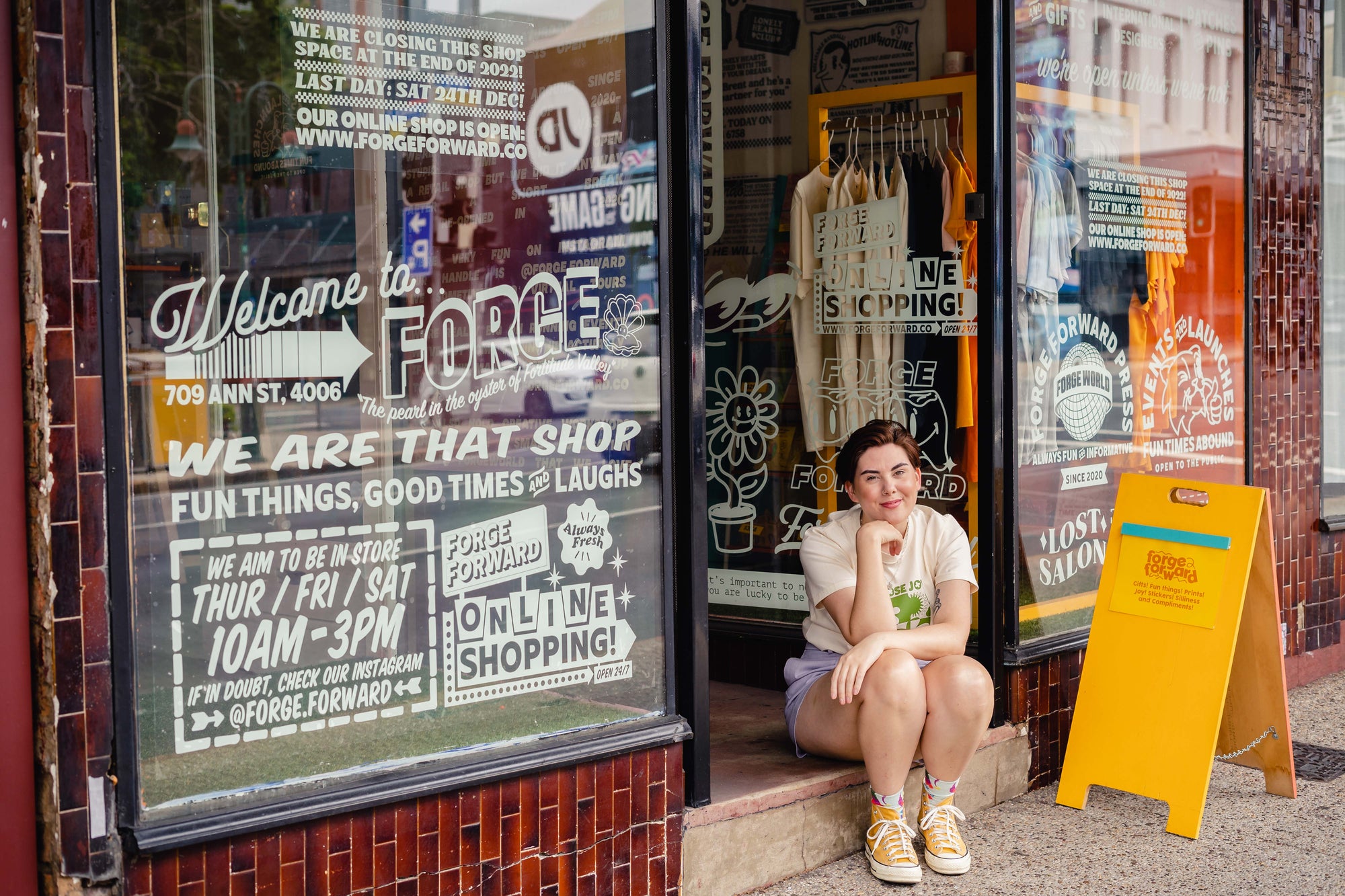 Forge Forward is an independent Brisbane-based design brand built by multidisciplinary designer Amy Crow. Forge is based on the values of joy, discovery, and education. We care about creating with intention, crafting thoughtful, playful products across apparel, homewares, art, and stationery. From funny (sometimes filthy) bumper stickers that get people grinning at markets to bold prints that fuse typography and illustration, every piece is designed to make an impact and inspire thoughtful reflection.