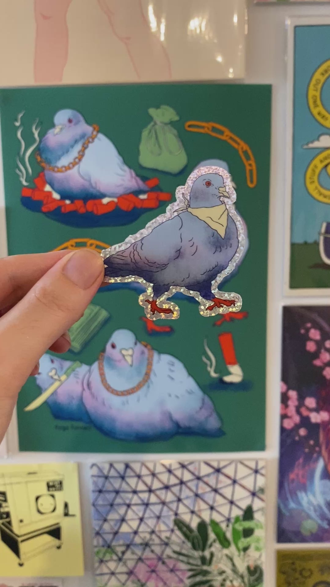 They're taking over the city these gang pigeons! Matte chunky silver glitter diecut stickers of gang pigeons.